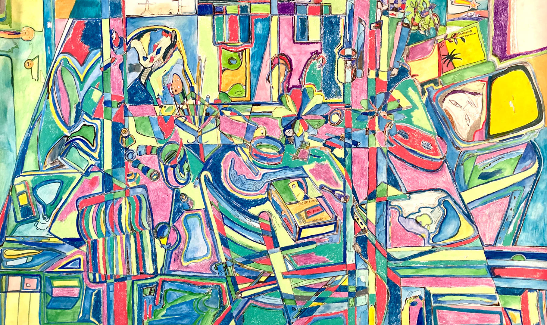 Oil pastels, watercolors and acrylics